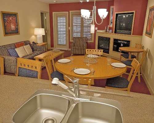 With units ranging from studios to two bedroom suites, there's enough room for everyone at the Carriage Ridge. You'll find spacious accommodations that fit groups of up to eight guests comfortably. Common in-unit amenities include private balconies to relax on, full kitchens to prepare meals in, and modern furnishings with up-to-date entertainment systems to ensure your full comfort. With an amazing combination of both convenience and luxury, it's no wonder why the suites at the Carriage Ridge Resort are so popular.