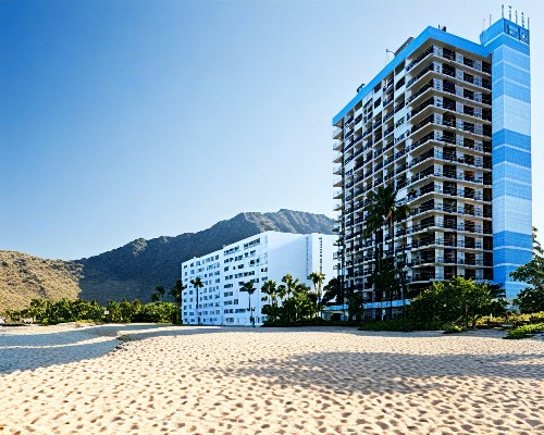 Located on the leeward coast of Oahu, the peaceful *Hawaiian Princess at Makaha Beach* features a beautiful white-sand beach with spectacular ocean views from every apartment! Walk and play on the beach, swim in the pool, relax in the whirlpool, play tennis, and barbecue...