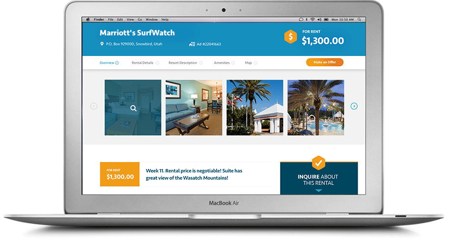 - Take advantage of our exclusive discount program - Our rental services are heavily discounted for owners who also advertise a timeshare for sale with us.